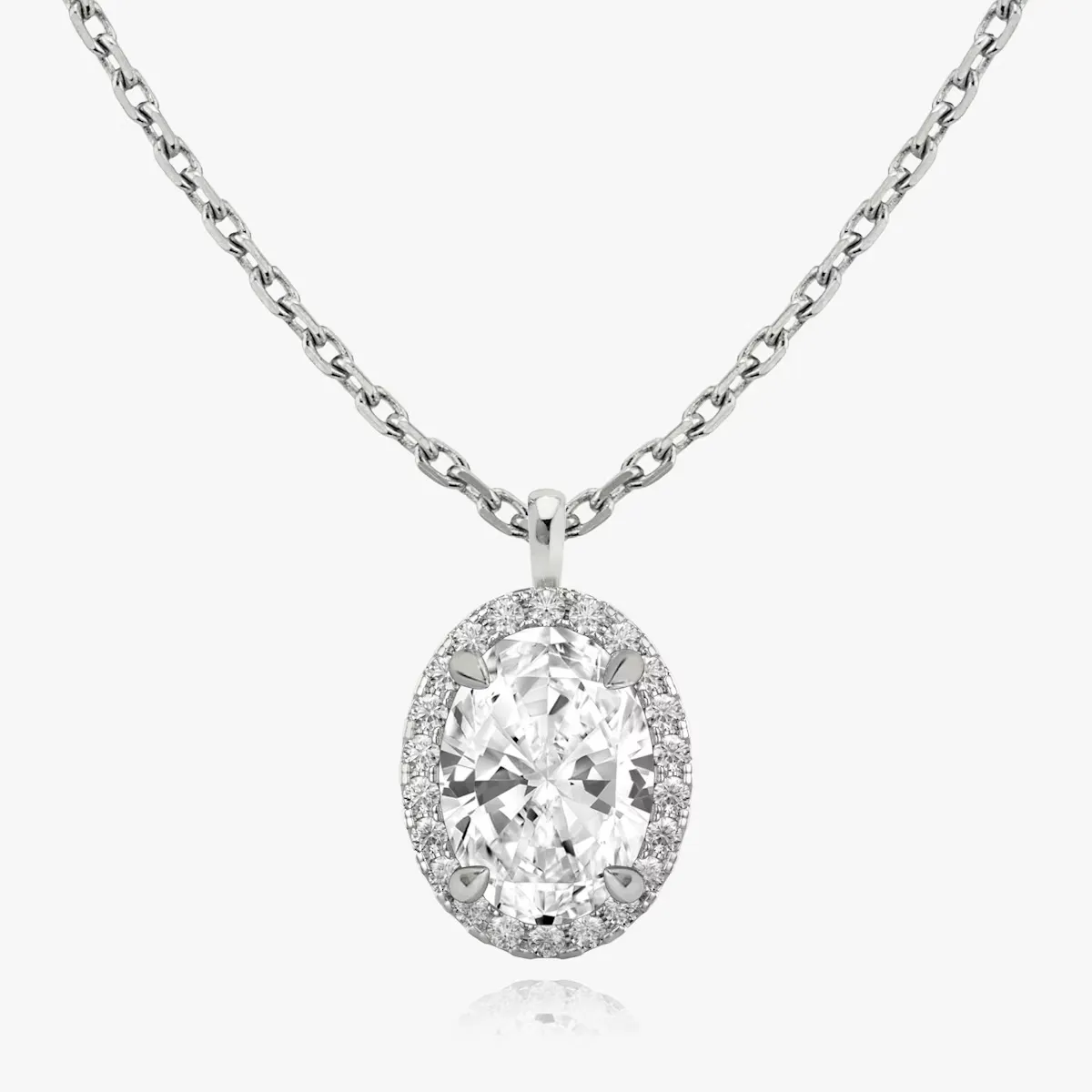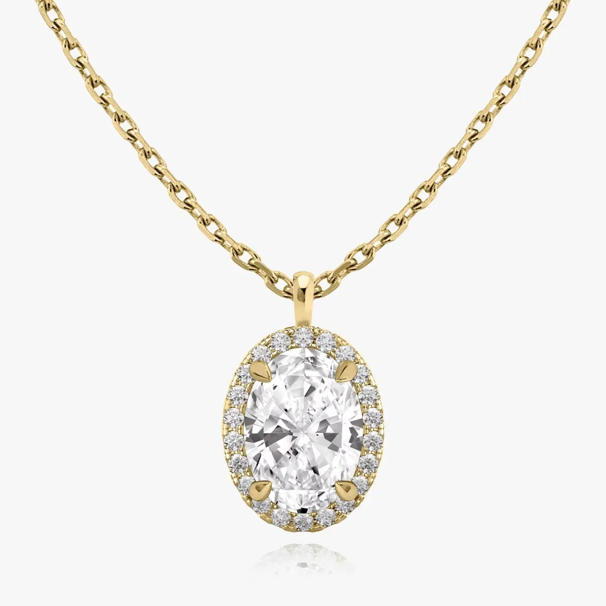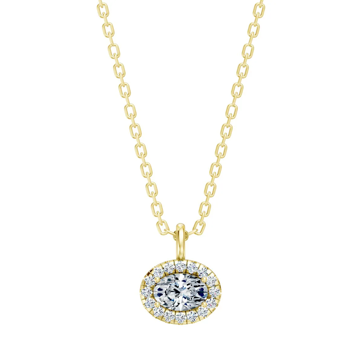 Colgante BRISA con diamante central talla oval y orla de brillantes, realizado con oro de 18K.
