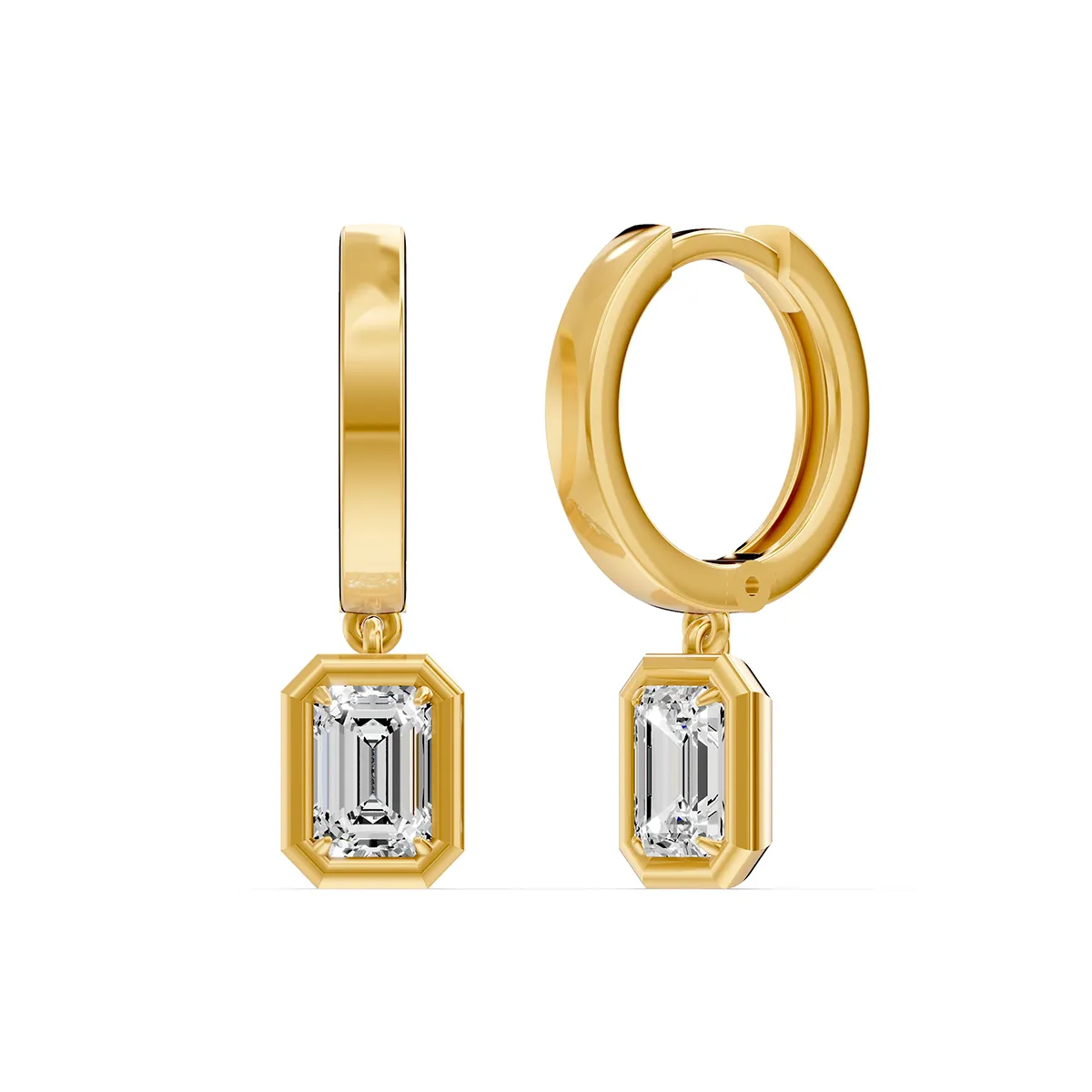 Pendientes CÚBICA estilo Criolla, con diamante talla esmeralda, realizado con oro de 18K.