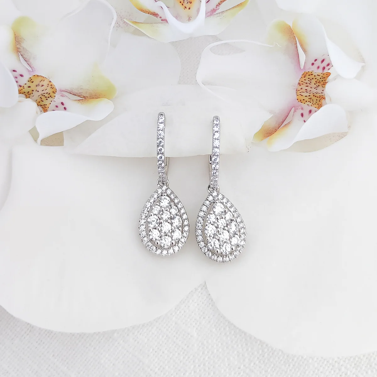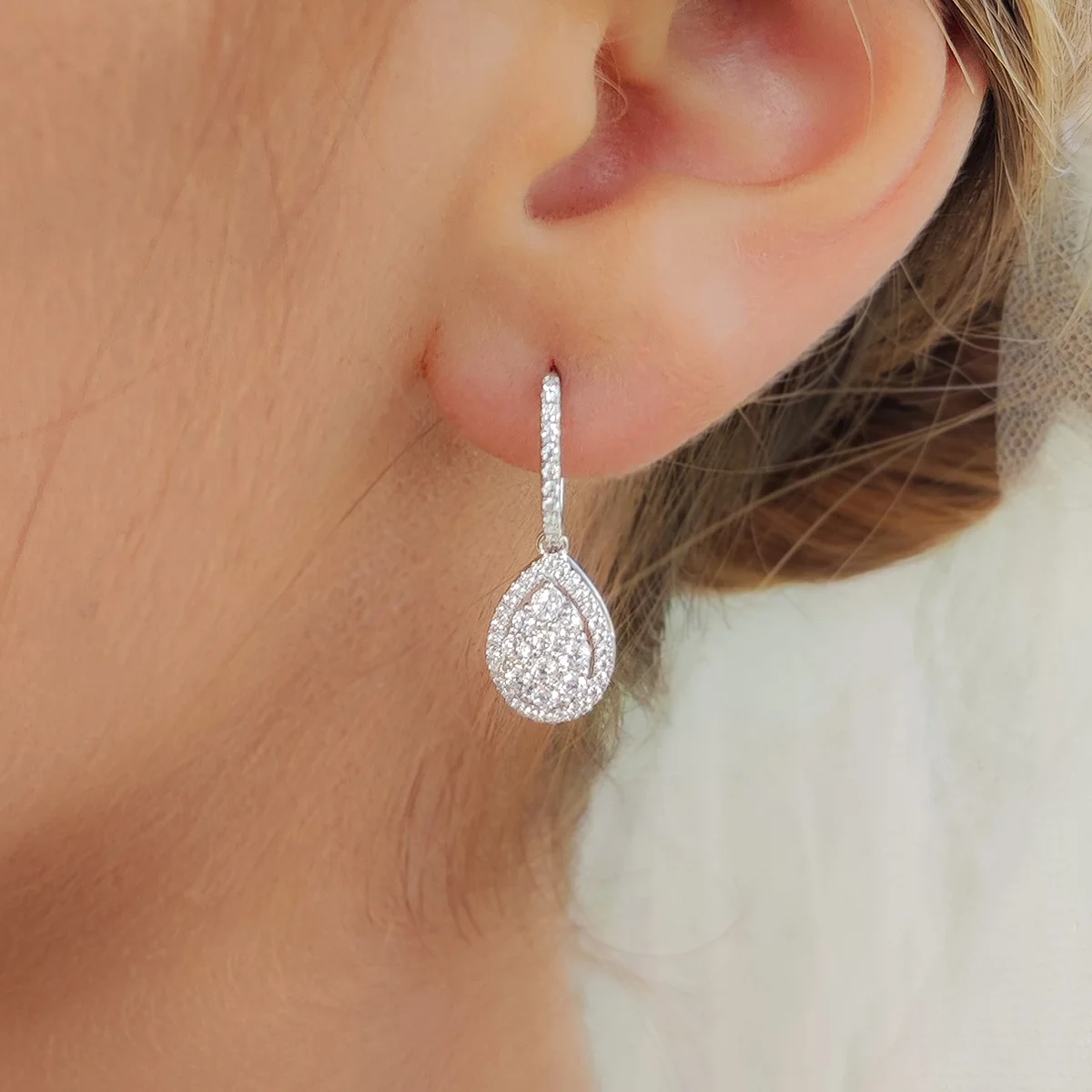 Pendientes con diamantes talla brillante. Realizado en Oro Blanco 18k.