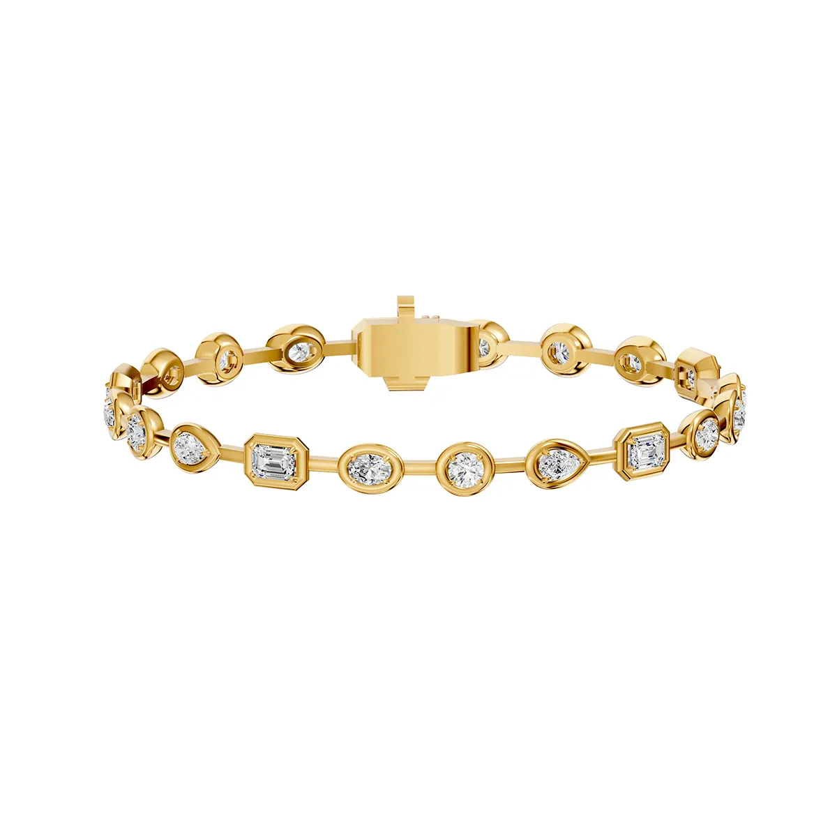 Pulsera que alterna varias tallas de diamante creados, brillante, esmeralda, oval y pera con un total de 20 diamantes creados en laboratorio y 3,13Cts.